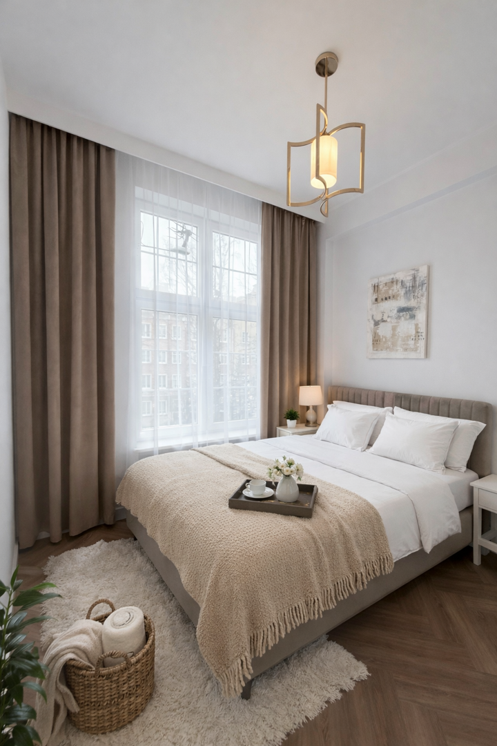 Miejsce, które oddycha spokojem To nie tylko apartament. To przestrzeń stworzona z intencją – by dawać wytchnienie, wyciszenie i poczucie bliskości z tym, co naturalne. Wnętrze utrzymane jest w stonowanych, ziemistych barwach.